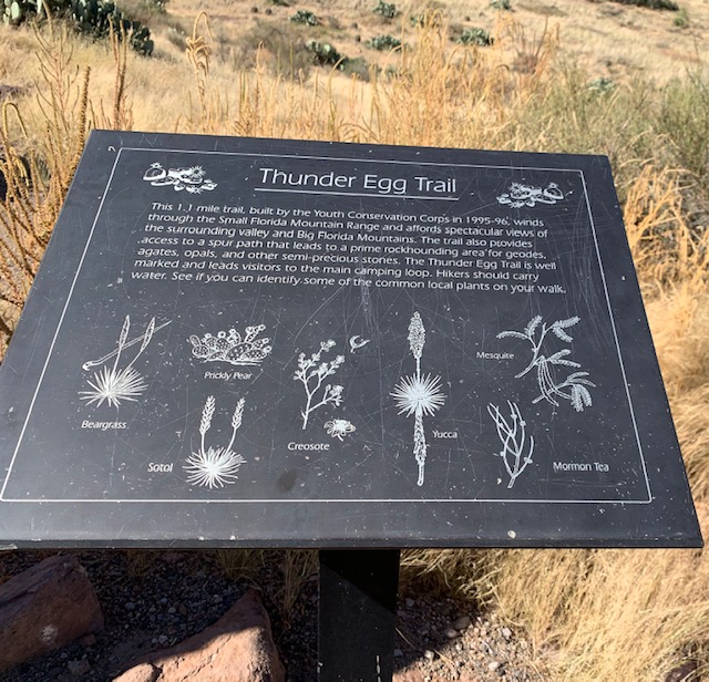 Why it’s called “Little Florida Mountains”  when we’re in New Mexico, who knows?  Rockhound State Park is a favorite place  for “rockhounds” because of the abundant  colored stones  and quartz crystals found there. And the Hiking trails have great views of the surrounding landscape.
