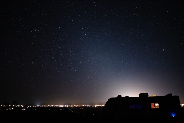 When the sun goes down we get to see the city of Deming, NM all lite up from a distance.