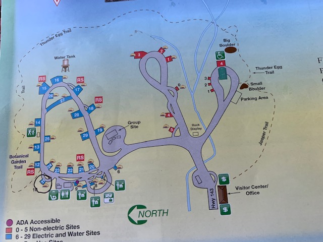 We’ve taken this trail a couple of times, you enter/exit the trail right next to our RV it takes you up the hill all around the campground and exits/enters at the parking lot. This is were we’ve gotten some rocks also.