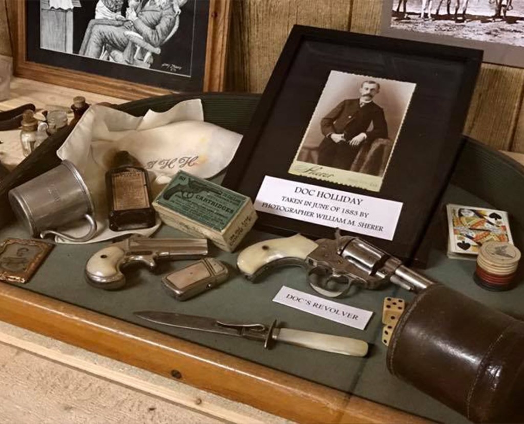 The above is all the worldly remains of Doc Holiday. When he died the owner of the sanitarium collected his personal effects and kept them as payment. This all stayed in the family until 1964 when it went to auction and the Gunfighter Hall of fame bought it. Displayed here for almost 60 years.