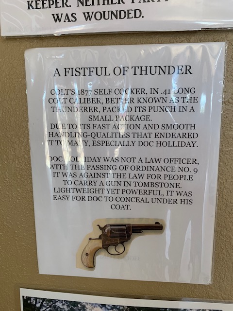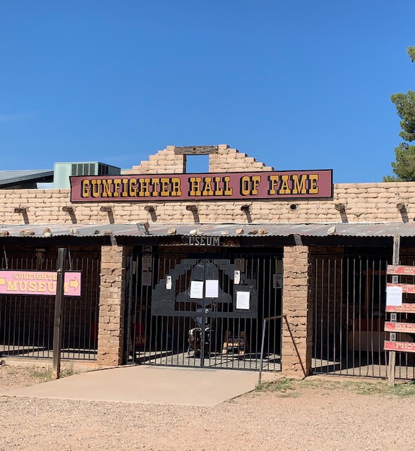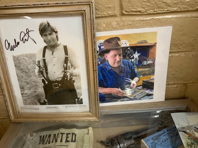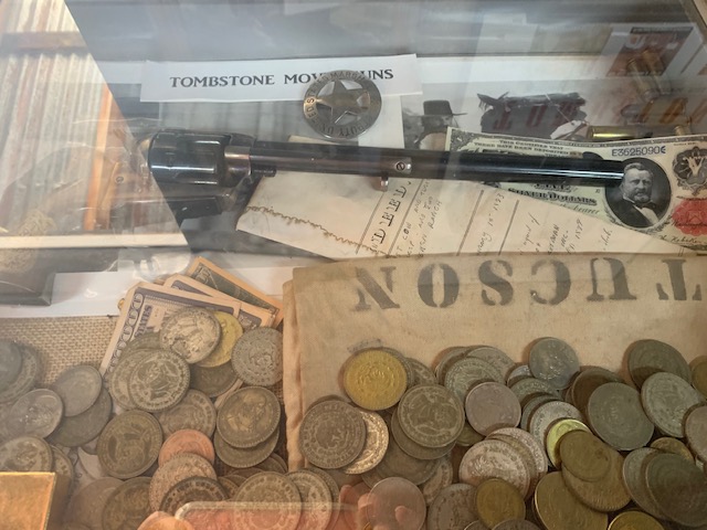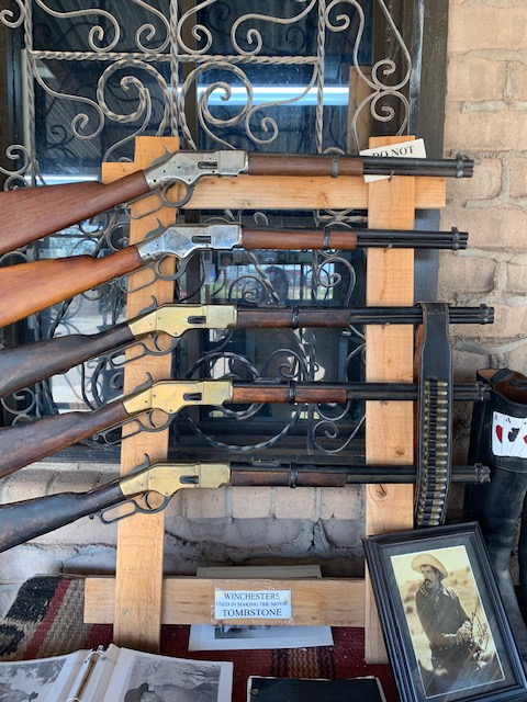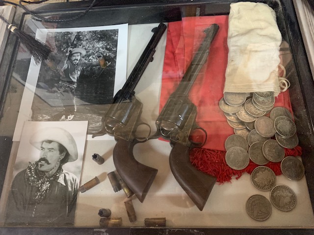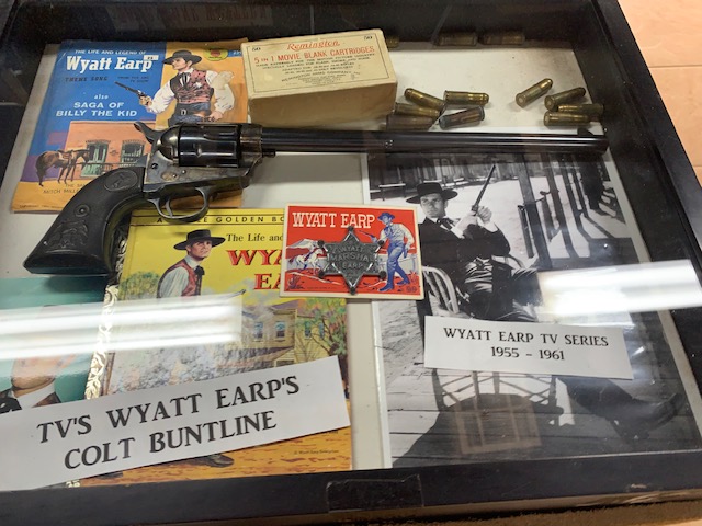 We just got back from spending three days in Tombstone, the town too tough to die. It was a really fun time. Melissa will be making a few posts on our trip there, but I wanted to post on one of the neatest places we went. “The Gunfighter Hall Of Fame”. At first glance not impressive, but we spent three hours there. The museum has over fifty display cases filled with good, the bad and the ugly of the old west. Mainly original and authentic belt rigs, and pistols, some rifles from the most famous names in old west history. Also in the museum are(movie props)mainly gun belts and pistols, worn by iconic actors from some of the most famous movies of all time. Valued at over over three million dollars, this was an amazing place to see. The owner was a great guy, we think he was a child actor once, as to own all this he has to know a lot of people in the business. Also all the movie prop guns are real not fake they will fire a live round if one is put in.