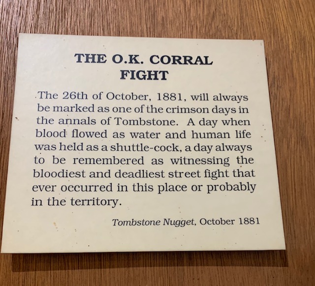 Our First stop was The Visitor Center. The first business in Tombstone was opened in building by J.B. Allen. In 1879 it was once a store and a bank, then several other businesses. Now the Chamber of Commerce and the Tombstone Visitor’s Center.