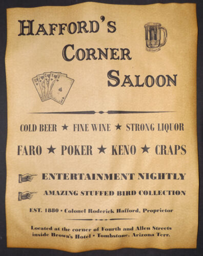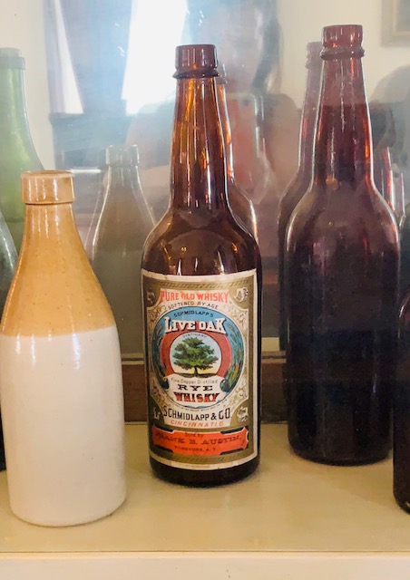This bar was taken from Hafford’s Corner Saloon. This is the saloon where the Earps met to have a drink and make their plans prior to their famous confrontation and gunfight with the Clantons and McLaurys. The bottle of Rye Whiskey was at the bar at the time of the confrontation.