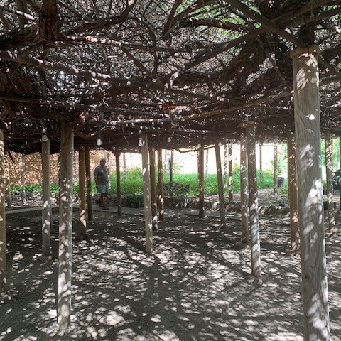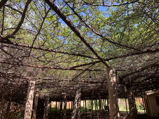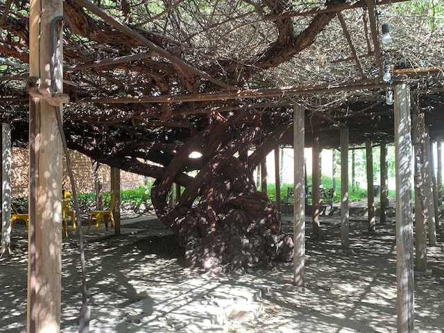 The canopy of the bush/tree now covers nearly 6,000 feet of space and is elevated from the ground by a series of wooden and steel supports. Each year, after the shed husks are cleaned out from around the base of the tree, the plant blossoms with clusters of small white roses. We didn’t get to see it when the roses were in bloom, but it was incredible and you can’t quite believe the enormous size. It must smell beautiful when it’s in bloom.