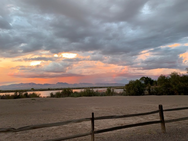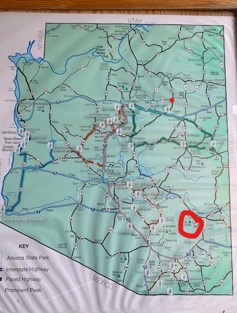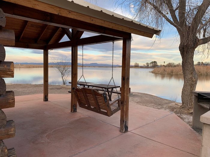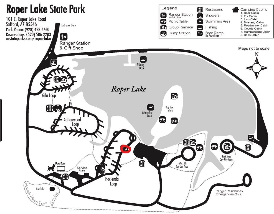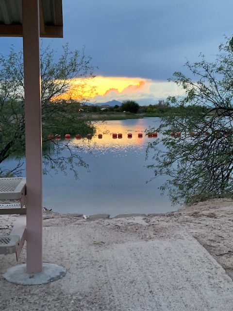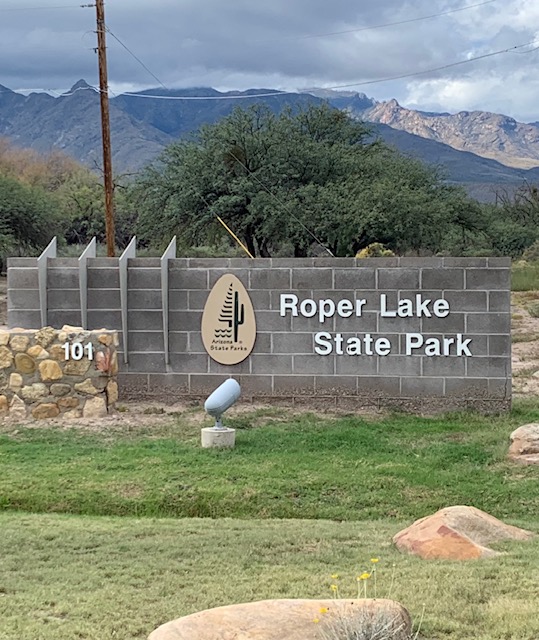 Roper Lake State Park is very scenic and has a 32-acre lake, man made of course.  The park is located off U.S. Route 191, 5 miles south of Safford, at the Gila River and Valley. The land for the park was once a ranch purchased by the state in 1972.  It has a boat ramp, a beach for swimming, fishing, picnic areas, a campground, and cabins. The lake is stocked with bass and trout. The park also has great hiking trails and lots of birds to watch. This park in southeast Arizona in a beautiful location surrounded by the sky island Pinaleño Mountains range, including Mount Graham.