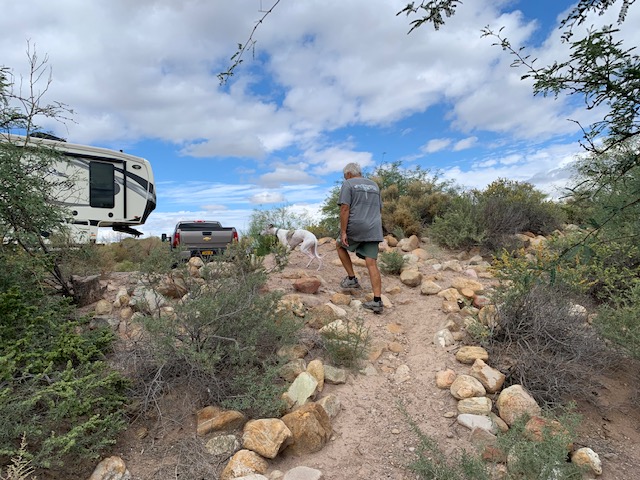 The campground has a dog run which is a first for us in a state campground. There we met Mike, who lives in Alaska and his two dogs Rooster & Monkey and their adorable puppies.
