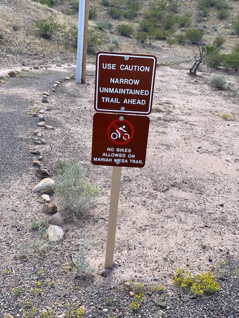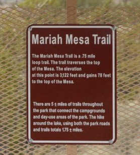 One of our favorite trails is the The Mariah Mesa Nature Trail. It’s about 3/4 of a mile halfway and a bit of an elevation gain 78ft getting to the top.