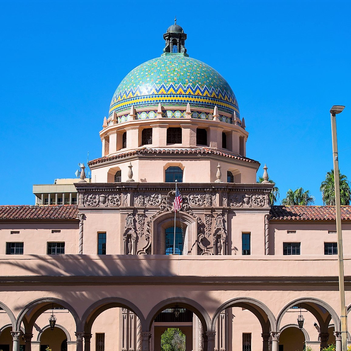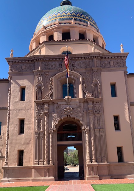 The Historic Courthouse is on the National Register of Historic Places and the “most outstanding Spanish Colonial Revival building in Arizona” with its “elegant blue-tiled dome.” Currently, it’s home for Pima County Attractions & Tourism, Pima County Administration, The Southern Arizona Heritage and Visitor Center and the University of Arizona Alfie Norville Gem and Mineral Museum. The Courthouse is famous because of America’s Public Enemy No.1 John Dillinger. In 1934, the bank-robbing celebrity gangster was captured in Tucson and held in the facility along with three of his gang members. You now go inside the courtroom as it has been preserved and rehabilitated to the 1930’s Dillinger days. We’ll have to go back and see that for sure.