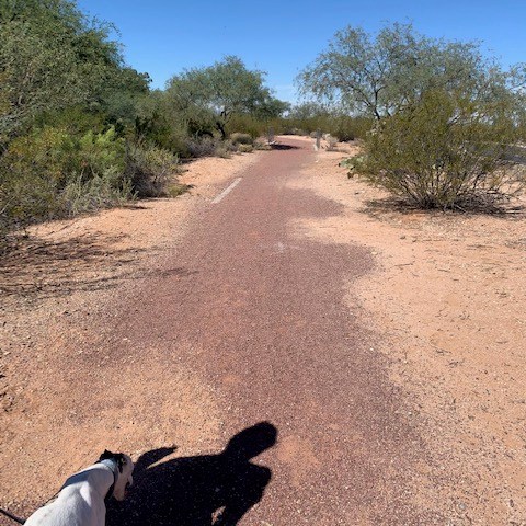 The Loop is a system of shared-use paths in metropolitan Tucson, Arizona. Approximately 137 miles of paved pathways and bike lanes have already been completed with additional trails to come. It’s a nice place to walk with Cooper.