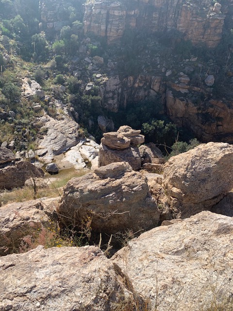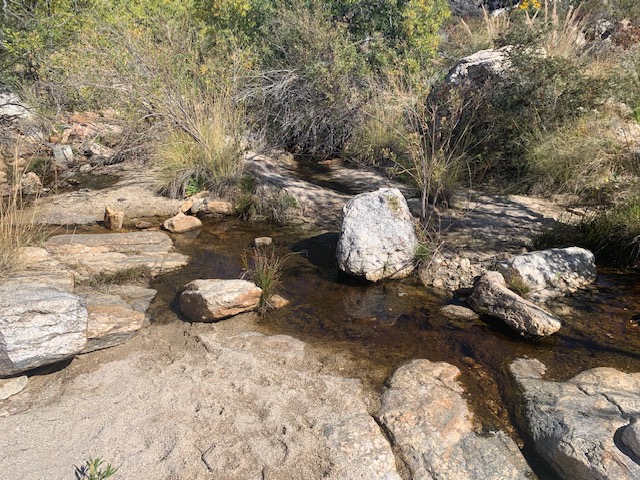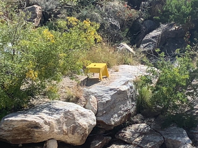 We stopped and hiked at the Molino Canyon Vista. It was a deep canyon with a creek running through it. This area was a fabulous spot and a great place to boondock, as someone had setup a yellow table cloth and their tent was close by. A really neat place for sure.