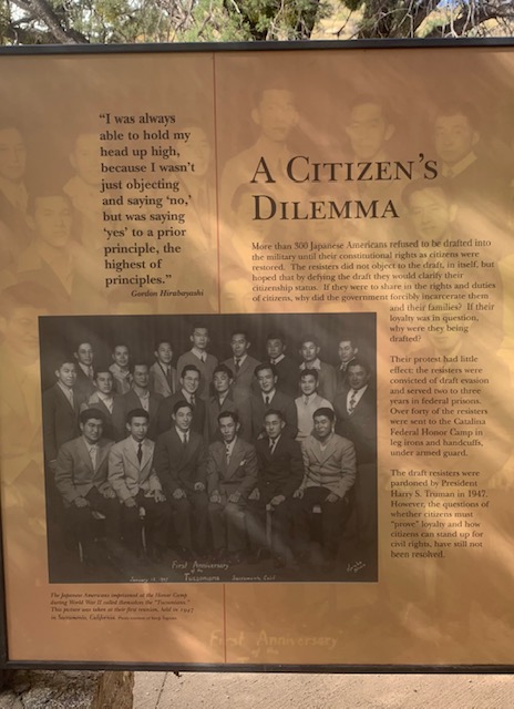 During World War II, many of the prisoners of this camp were conscientious objectors whose religions prohibited them from serving in the military. Some were Japanese Americans, as Gordon Hirabayashi was. After WWII Japanese Americans and many American Citizens, were imprisoned in these camps for fear they would conduct espionage and sabotage along the west coast. Gordon later fought that he was imprisoned wrongly, he won the case and after that the area is become known as The Gordon Hirabayashi Recreation Site.