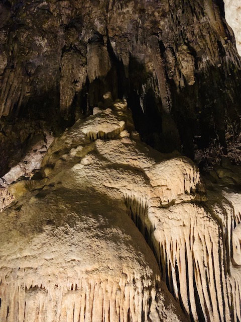 We are now at Kartchner Caverns State Park. The park is about 45 miles southeast of Tucson and about 9 miles south of Benson, where we have been before. We drove 45 miles to get here, not far at all. The park has a big campground area, we have a giant pull through site, surrounded by Miscite trees. Yes there are cave’s here, we will be going on two tours this coming week.