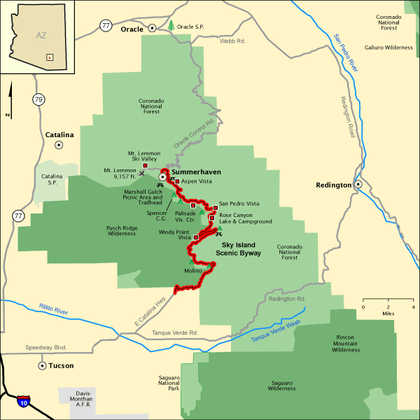 Windy Point is a scenic view point on Catalina Highway, on Mt. Lemmon. The overlook provides a a great view of the Catalinas and the Tucson valley below to the east and the Rincon Mountains to the west.