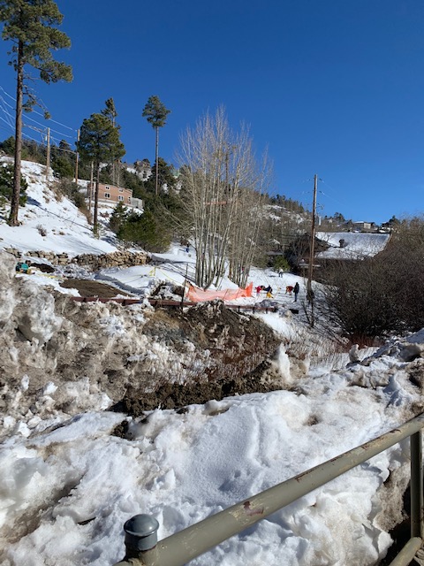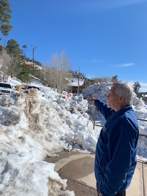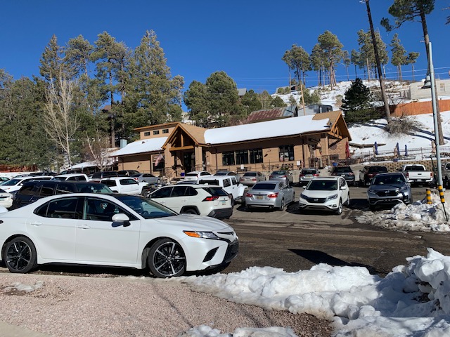 Before we came to AZ we didn’t know it snowed here. On the drive up to the top of Mt. Lemon we noticed a bunch of cars going up the mountain too. We didn’t know why so many people were going there. We thought they all can’t be skiing if there was snow. We didn’t see the snow until we very close to the top where it’s the coldest and there it was snow in all it’s glory! People were all up here taking advantage of the snow. People were finding areas they could get into where there was snow and they had sleds or saucers going down hills with them and only going about three or four feet. It was fun watching them as we couldn’t believe so many people were there enjoying what little space they could find. We were saying man these people don’t know what it’s like to go sailing down a real hill like back in Western New York.