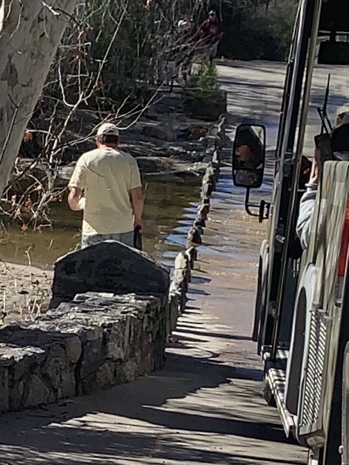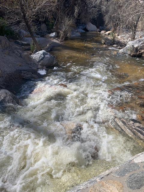 Everywhere we’ve been in the West it’s all been dry, even in the nooks and crannies, so we were both shocked and happy to see all the water that came in from the mountains. When it rains in AZ it’s not enough to really help, so snow is a good thing. When Dave & I were here we only saw this one small area of water so we were shocked to see all the water now. We never know what to expect in Arizona.