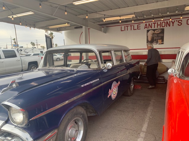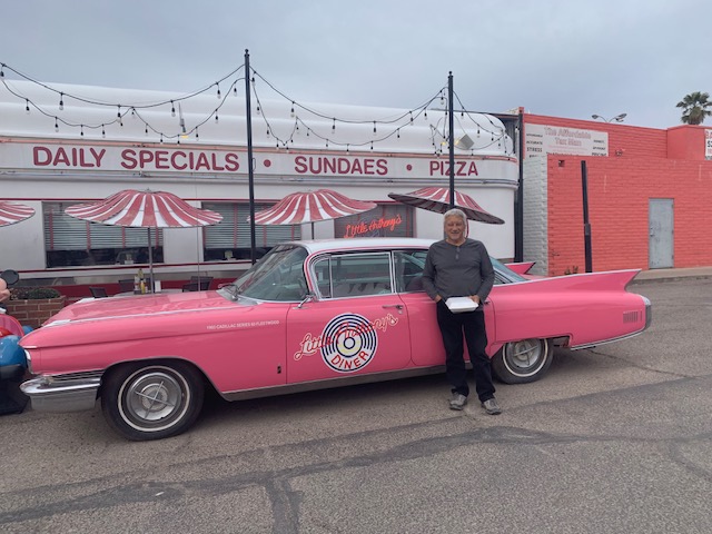 Little Anthony’s Diner is a fun 50’s themed restaurant at Broadway and Kolb in East Tucson. The diner features sparkly red seats, checkered floors, and servers in costume. Not just limited to a simple meal experience, Little Anthony’s also hosts a DJ on the weekend to take requests of classic hits from the golden era of the diner, as well as host music and pop culture trivia and they also have live bands. Every other Saturday, the tall fins and the pointed side-view mirrors roll into the parking lot when the diner hosts its classic car show. Dave & I ate here last week, the food is really good, we are definitely going back to check out this cool gig.