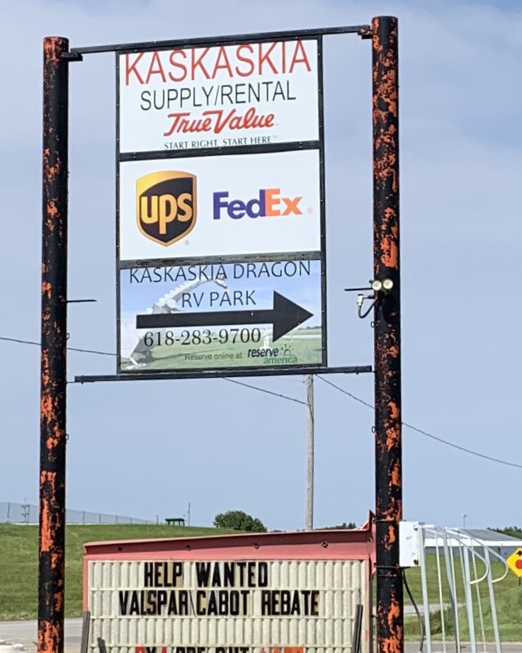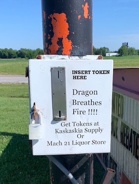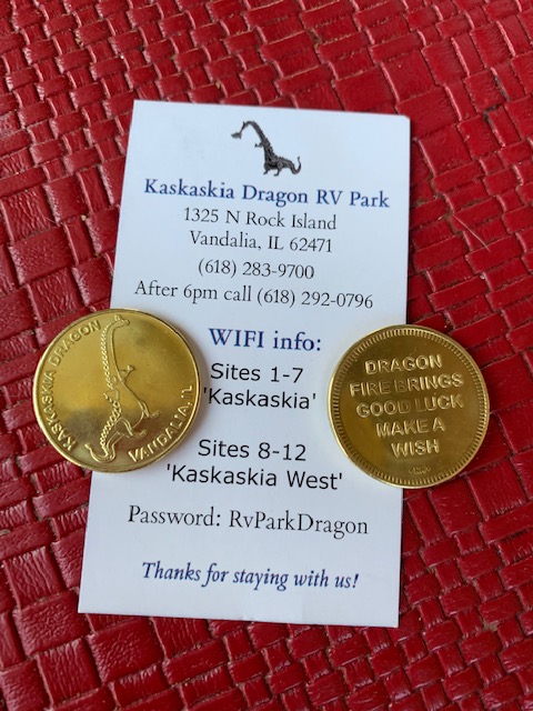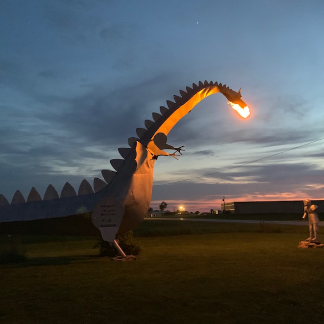 It is May 27th and we’re staying overnight at at Kaskaskia Dragon RV Park in Vandalia Illinois. It only has about 12 spaces without any bells or whistles. But what it did have was a Fire Breathing Dragon ! !