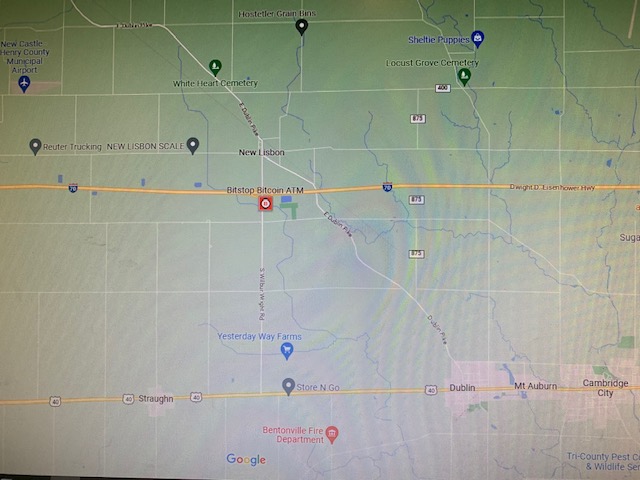 Map & Old postcard of New Lisbon. We are where the red dot is, as you can see it’s a small town.