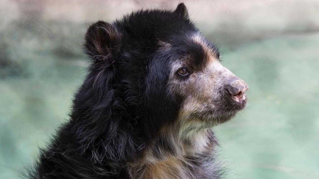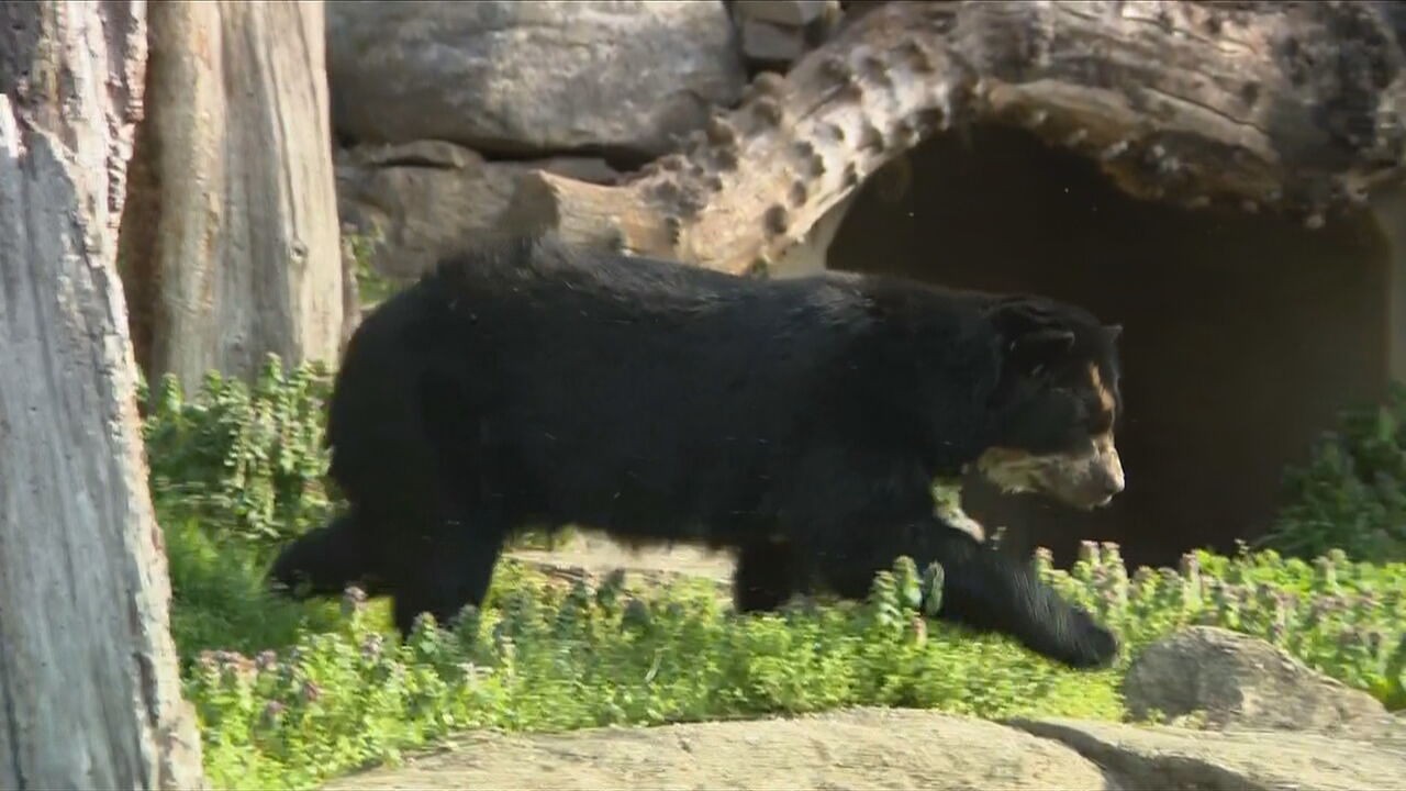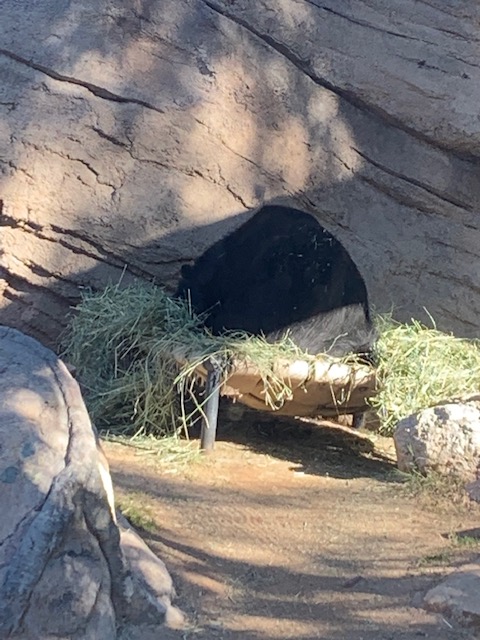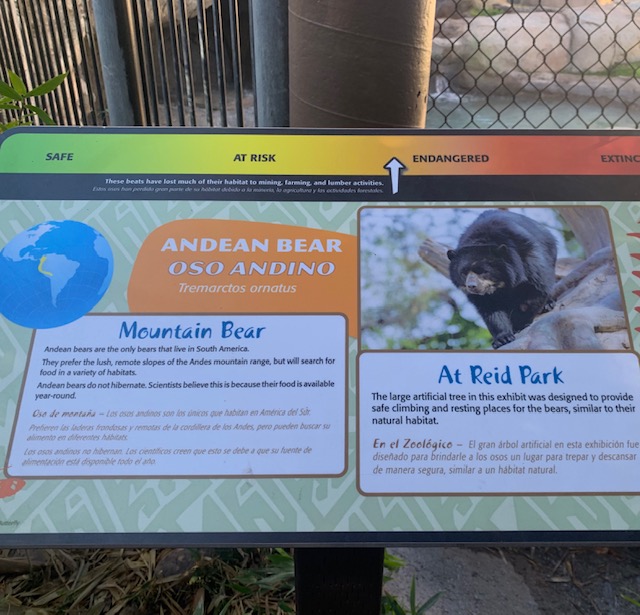 The bears name is ” Joaquin the Andean bear.” Joaquin has the cutest face so I wanted to tell you about him. Andean bears are also known as “spectacled” bears due to the tan coloration often found around their eyes, resembling spectacles or eyeglasses. He weighs about 400 lbs. Diet: Most of their diet, however, consists of herbivorous material such as bromeliads, palm trees, cacti, and flowers. Only about 5% of their diet consists of meat, mostly small mammals. This makes them one of the most herbivorous bears, second only to the giant panda.