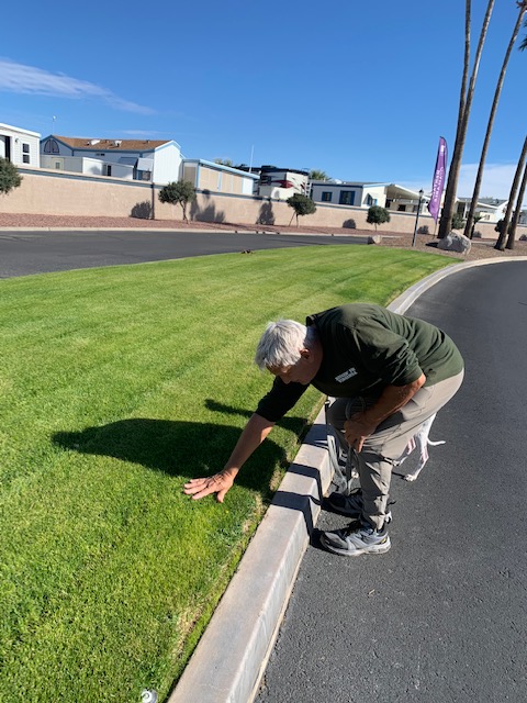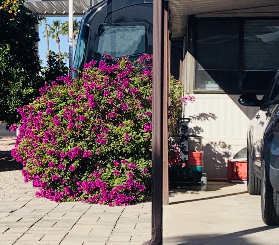 Our walk around the perimeters of the rv park. It’s nice to see the plants with flowers and the green grass.