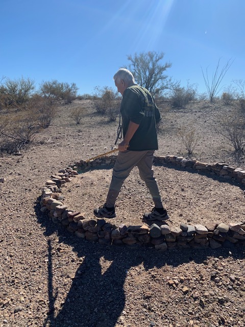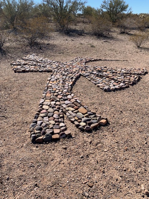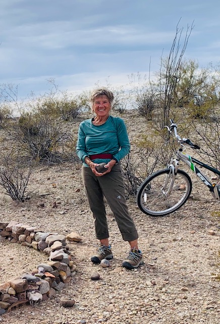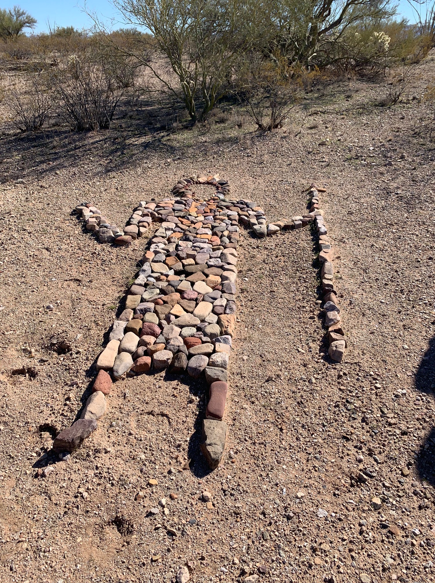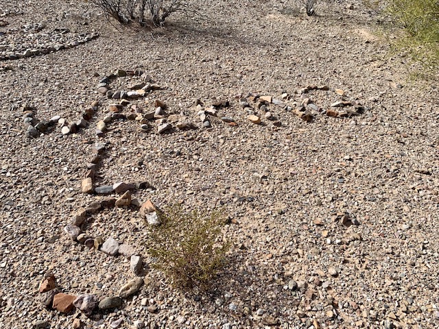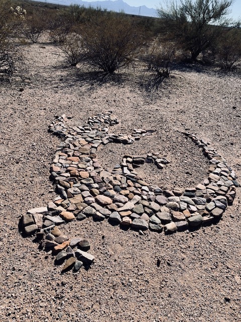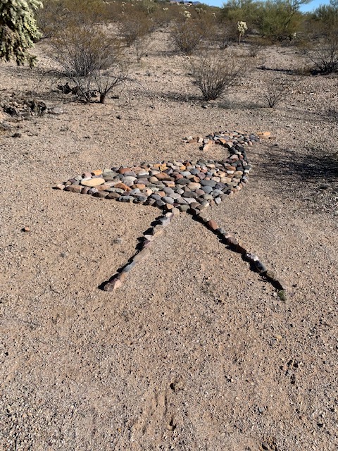 On one of our hikes across the street we wondered to the desert, where we met Karen, the talented lady who created and built the wonderful rock creations on the trails.