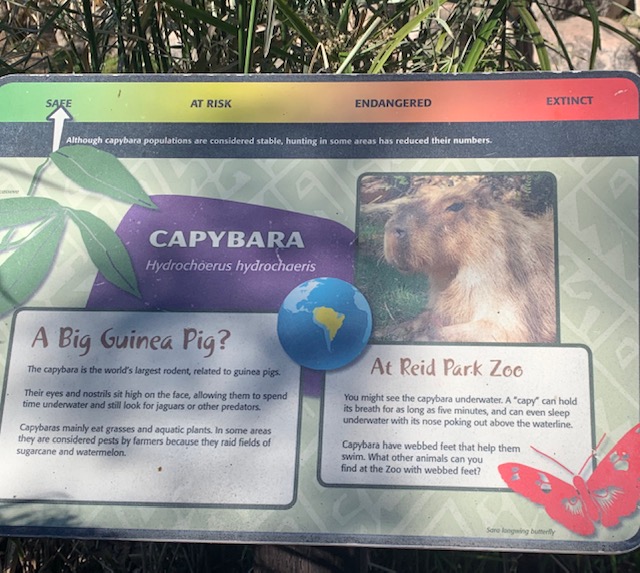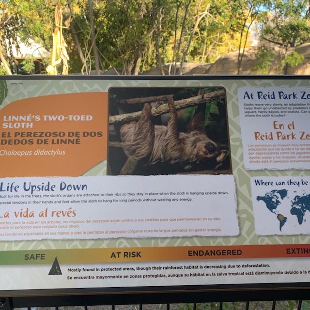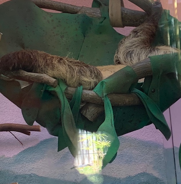 Gwen is a Linne’s Two-Toed Sloth. She didn’t want to wake up but we found out some interesting facts about Gwen. They move really slow and like to sleep a lot and sloths spend most of their lives on trees in an upside down position. They do most everything upside down including eating, sleeping, mating and giving birth.