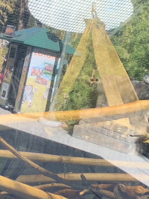 I’m tickling a monkey and another monkey is in their swing contraption on the right.