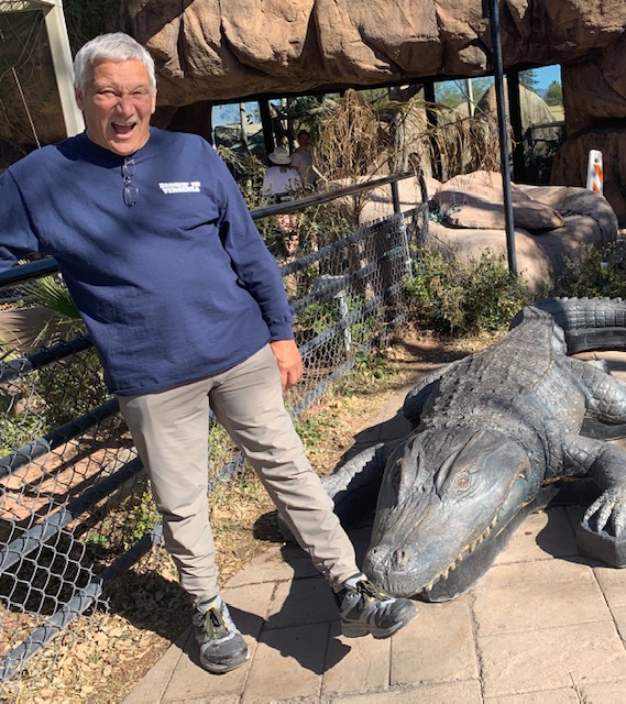 Bayou, the American Alligator got mad after I sat on him and went after Dave’s foot!