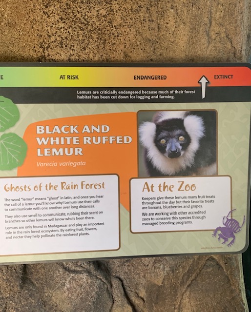 What is neat about Black & White Ruffed Lemur is the word “lemur” means “ghost” in Latin. It’s the call/shout of theirs that sounds ghostly. Also, their eyes are a bright orange or yellow.