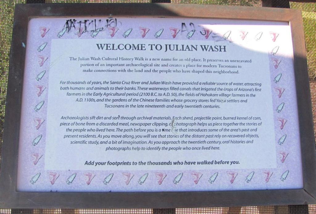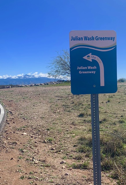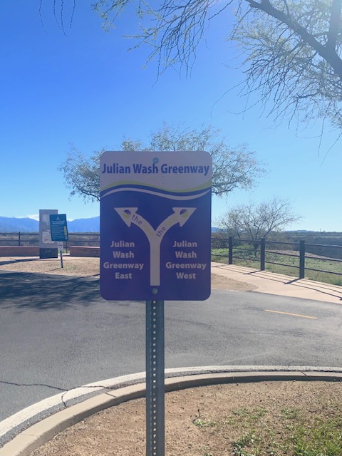 Dedicated in February 2011, the Julian Wash Greenway is part of the Chuck Huckelberry Loop. The Huckelberry Loop is 130+ miles of paved pathways all around Tucson. So bring out your bike, your sneakers, skate board, scooter even your horse and enjoy the scenery.