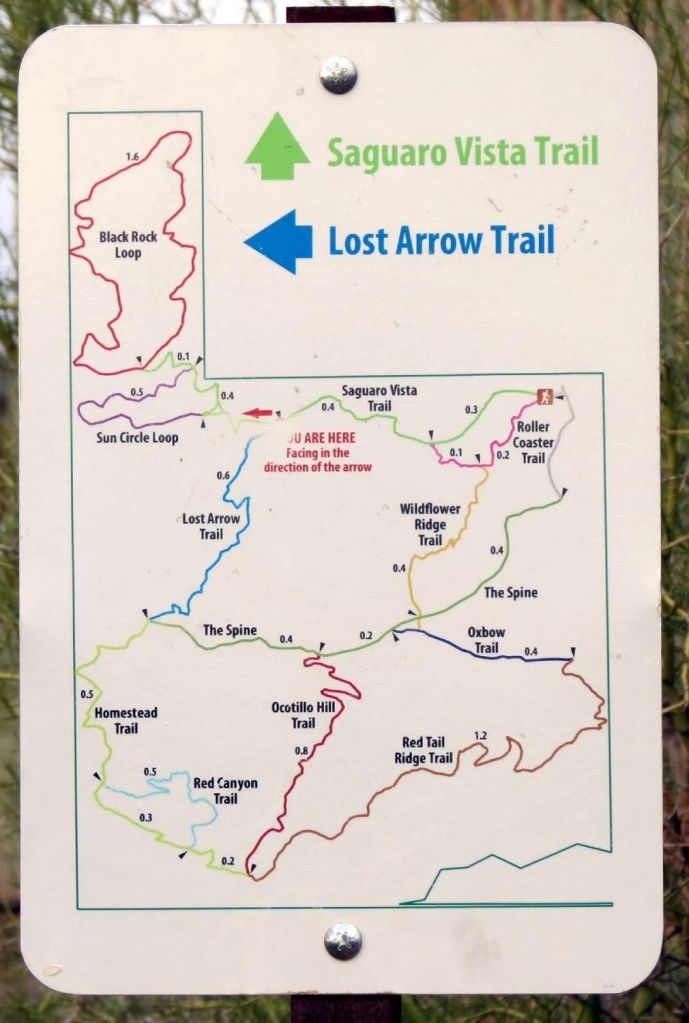 We started at the marker to the Saguaro Vista Trail to The Roller Coaster Trail then followed Wildflower Ridge Trail to The Spine Trail and back. Great walk with lots of great scenery.