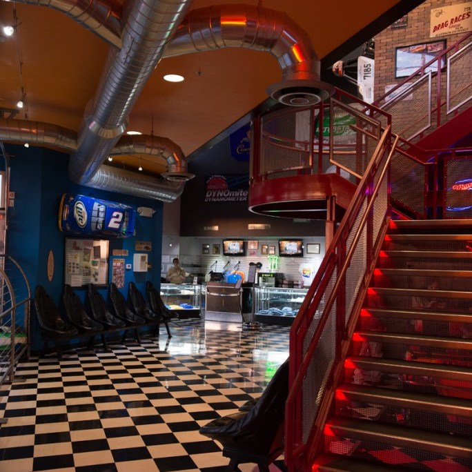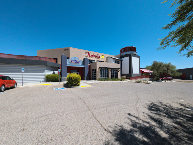 Hotrod’s likes to honor America’s love for the automobile. The design of the building has a working custom body shop garage with a high-volume split level restaurant.  Multi-use spaces are used to have backdrops for car shows, bike rallies, drag races, and special events. It also has an elevated patio to watch the car races.