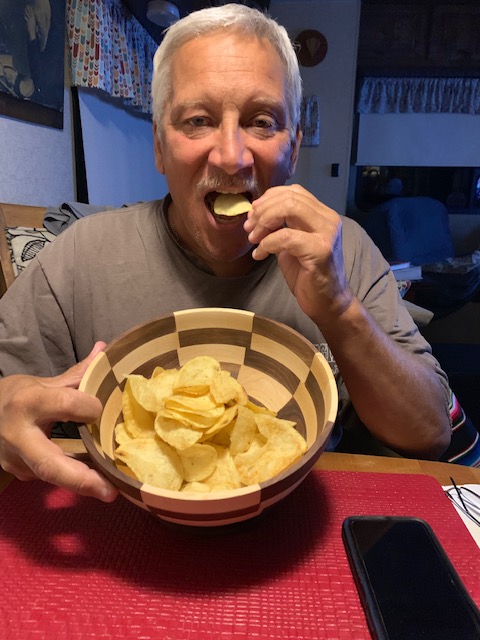 Garth made this really nice wooden bowl for Dave’s snacks.