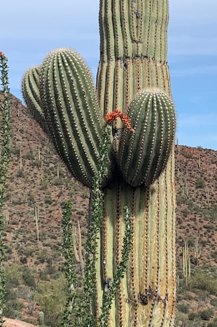 It was nice to see the flowers blooming in the desert. Dave & I have like and admire Saguaro Cacti. It’s kinda like the saguaros have personalities cause their so different looking with all their arms and legs. Like in the fifth picture it looks like the cactus grew legs and is ready to start walkin in the desert.