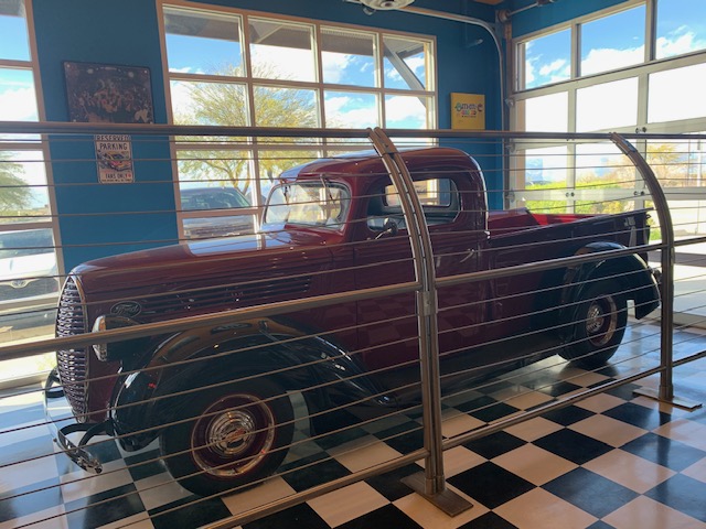 Dave & I wanted to check Hotrods Old Vail for something to eat. It is a racing themed bar, restaurant and a restoration garage located in Tucson. Where you can eat and and watch the retoration of cars behind the glass windows.