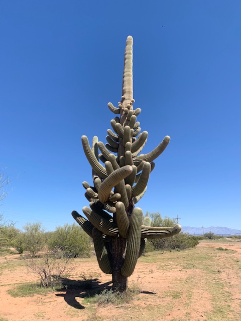 Here is ‘Shiva” the Saguaro and her 80 arms. The name “Shiva” references a Hindu god often depicted with many arms.