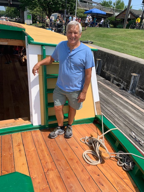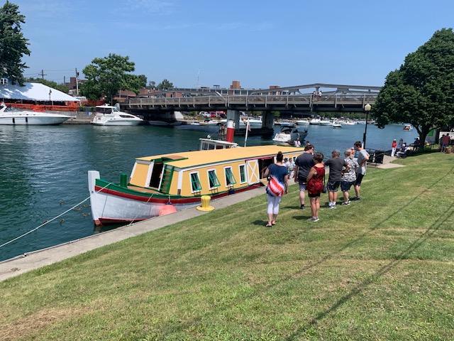 We went to CanalFest a large outdoor festival along the banks the Historic Erie Barge Canal. It is a 8-day festival that is shared by the Twin Cities of Tonawanda & North Tonawanda close to where we’re staying in Western New York. Our main reason for going was to see the Seneca Chief. It’s a replica of the original Seneca Chief that was the first boat to travel down the Erie Canal when it opened nearly 200 years ago in 1825. It is 73’ long, 12’6” wide, and it will weigh over 40 tons, rebuilding it has been a community project with 200 volunteers that came to the Buffalo Maritime Center at the Longshed to build and bring the Seneca Chief to life. This It has been under construction for four years and it came to Canalfest to show off!