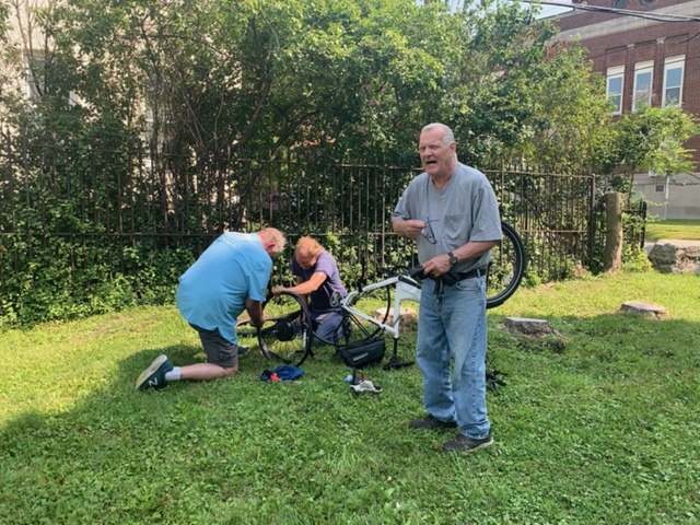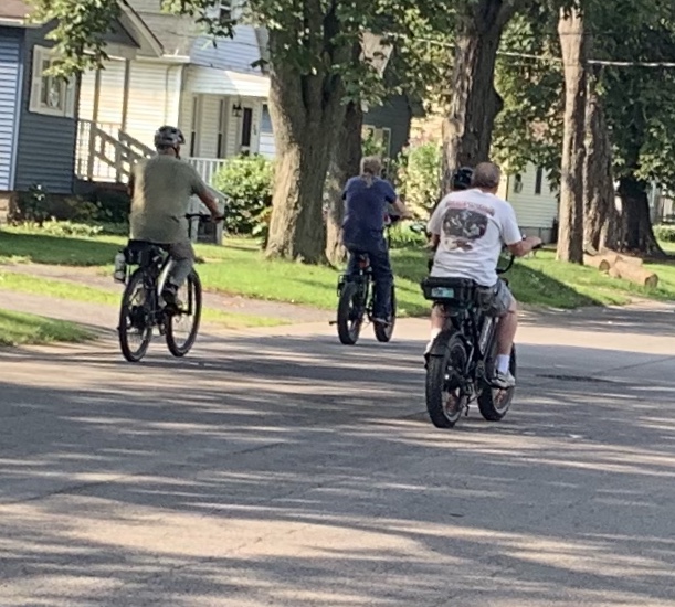He borrowed a friends e-bike to go for a 31 mile round trip. They on Cleveland street in Tonawanda and continued to Delaware Paark and then the Peace Brifge and back.