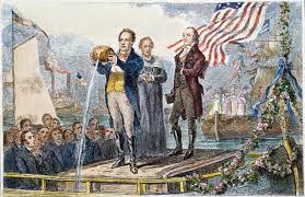 Governor Clinton and his party boarded the packet boat Seneca Chief, with two wooden barrels of Lake Erie water, to begin the journey from Buffalo to New York City. Eight days later, Clinton ceremoniously emptied the water into the Atlantic Ocean to marry the waters as a symbol of the importance of this canal.