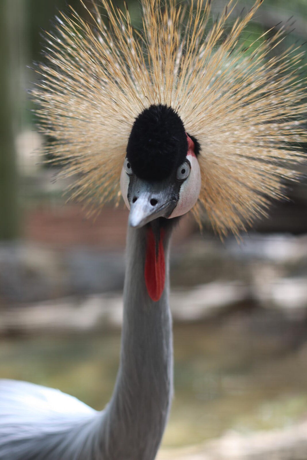 This is an East African Crowned Crane, check out their hair. The Grey Crowned Crane even has a wine named after it.