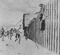 A display of the”Cherokee Attack” on Fort Watauga in May of 1776.