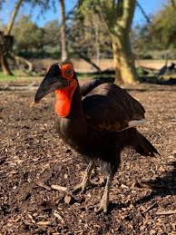 Thi is a male Southern Ground Hornbills, I know that because a female would have a patch of blue on her neck with the red.