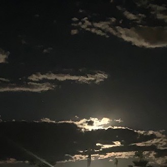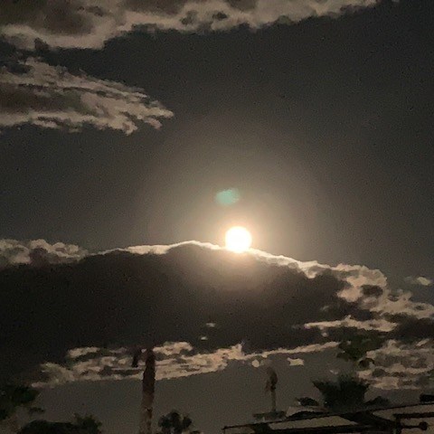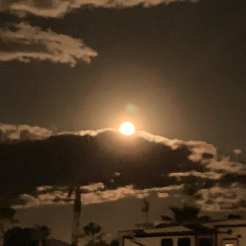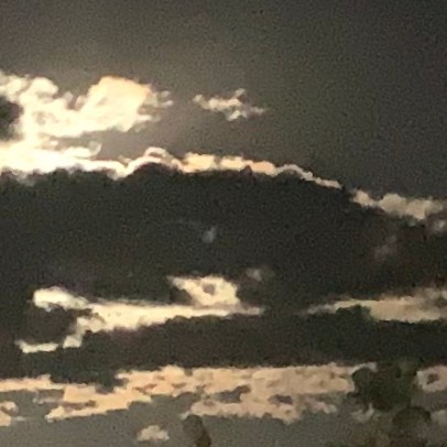 We like watching skies where ever we go. In the first picture the moon is passing under a cloud and it contines to pass thru the cloud making it black until it passes above moon.