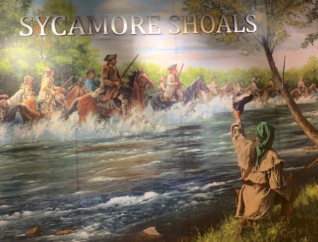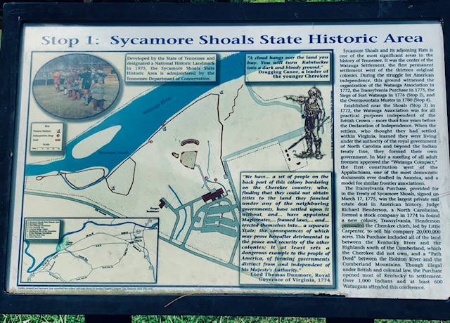 There is a shallow stretch of the Watauga River near the fort where The Cherokees used as a meeting place. When the settlers came they used the same location. By 1772 there were so many settlers moving to northeast Tennessee, so they figure they need some kind of government to provide law and order and organize their defense against Native American attacks. Ya’ll knew something like that was going to happen. The settlers met here, at Sycamore Shoals, to form the Watauga Association. Today this is considered to be the first majority-rule American democracy.
