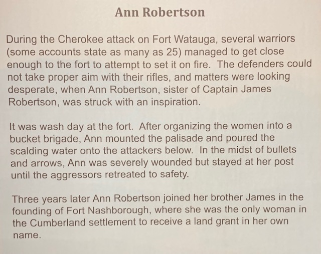 The Transylvania Purchase got settlers moving into the Middle of Tennessee. Which also started a war between settlers living in northeast Tennessee and Cherokee warriors. Fort at Sycamore Shoals the replica of Fort Watauga, a few months after the negotiations settlers living near the fort were attacked. Cherokees led by Dragging Canoe got together with the British with plans to drive the settlers back across the Appalachian Mountains. The settlers then formed a Committee of Safety. The Comittee acquired arms and built forts, including Fort Watauga. On July 21, 1776, a Cherokee invasion attacked Fort Watauga. The Cherokee’s attack was unsuccessful as John Carter, James Robertson, and John Sevier held the fort for a victory.
