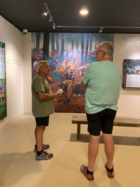 The state park is listed as the most important places in Tennesse’s history. There is a museum where Dave is standing which has interesting displays, stories and artifiacts. In back of the museum stands The Fort at Sycamore Shoals which is a replica of the original replica of Fort Watauga, which is right by the Watauga River.