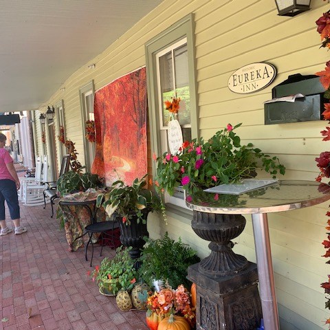 We wanted to go through the shops and and check out their merchandise but they were all closed due to Hurricane Helene, with no power and minor flooding. But we did see the Fall decorations that were out side the stores, they were all very impressive.