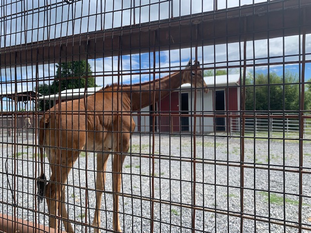 A female reticulated giraffe was born at Brights Zoo on July, 31st 2023. But unlike her mother she was born without any spots, a rarity. Giraffe experts believe she is the only solid-colored reticulated giraffe living anywhere on the planet. Zoo officials say the only record of a reticulated giraffe being born without spots was in Japan in the 1970s. Her name is Kipekee, which means “Unique” in swahili.