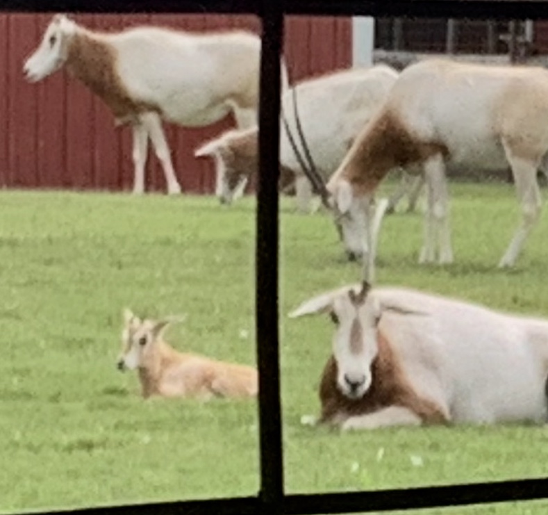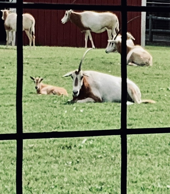 I don’t know what these animals are but I believe that they are Scimitar-Horned Oryx and Sable Antelope. I didn’t get a picture of their sign. But what ever they are they like hanging out together.