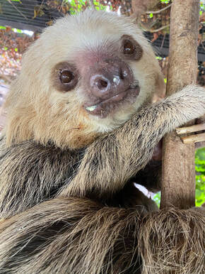 This is a Two-Toed Sloth, they can turn green. They can grow a layer of algae as a camouflage method to help protect them from predators. And cause they hang up side down all the time, the hair on a sloth’s belly is parted to help water flow off, instead of having a part on the top of it’s head.